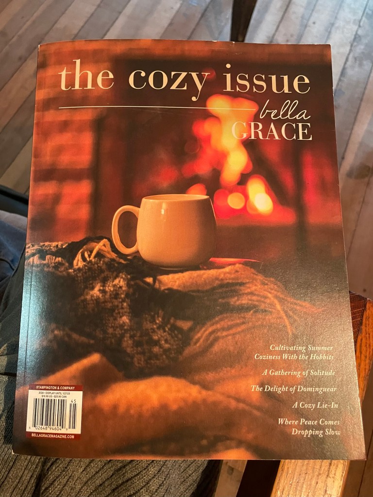 One acceptance was in Bella Grace, a favorite magazine of mine. The articles in Bella Grace are beautifully written, thought provoking, and inspirational. It’s always an honor to see my words chosen for their pages, especially in The Cozy Issue :).